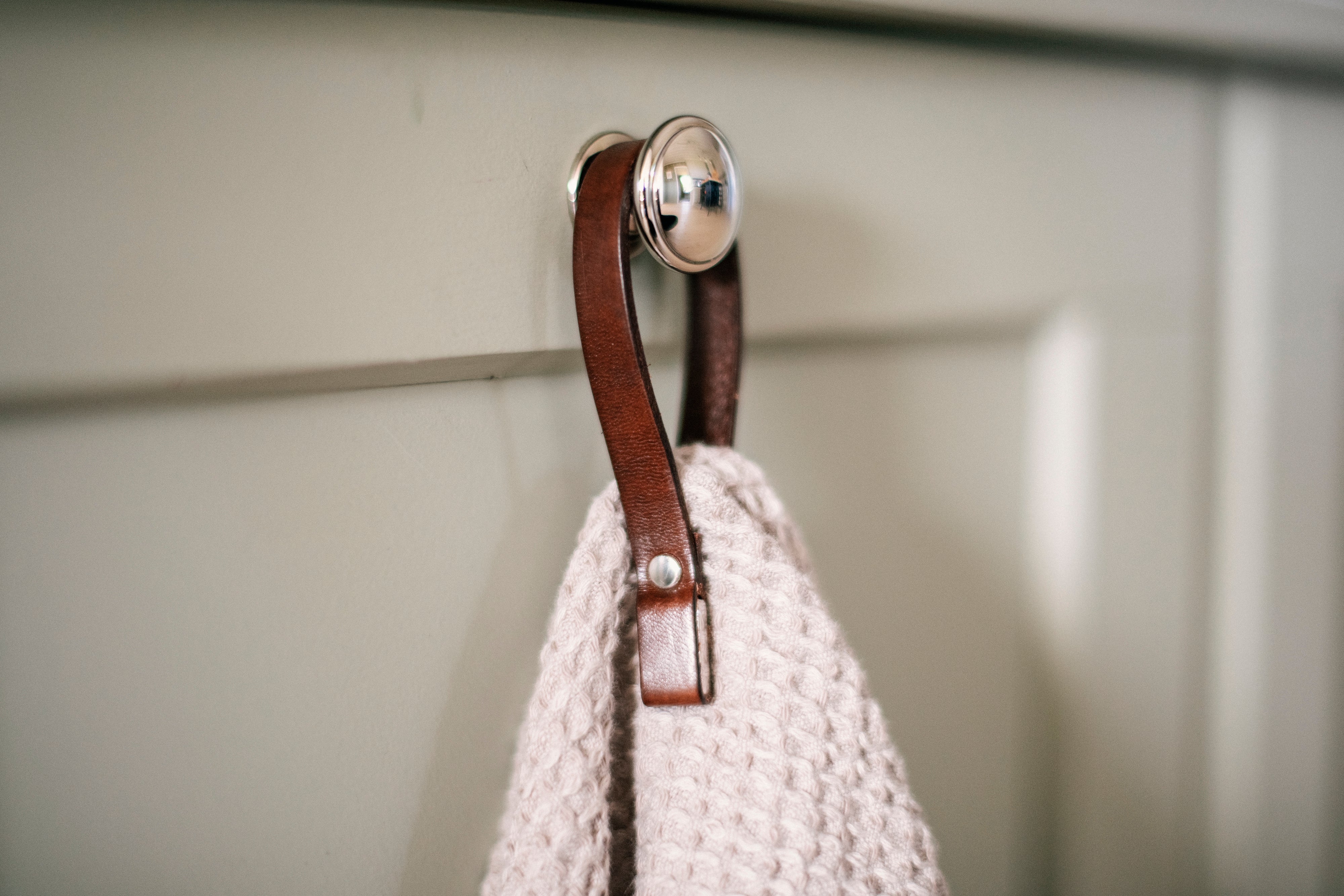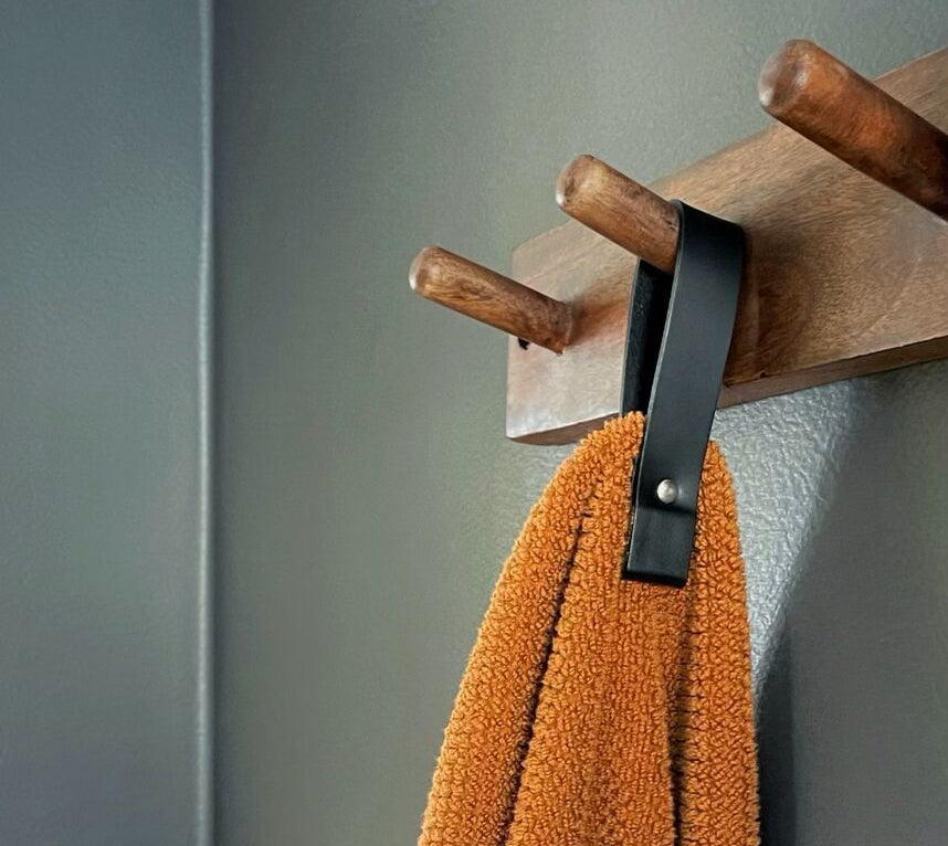 Det är detaljerna som gör skillanden. Handdukshållare av läder med starka magneter som håller fast dina handdukar. Finns i 2 storlekar och i 3 olika färger.